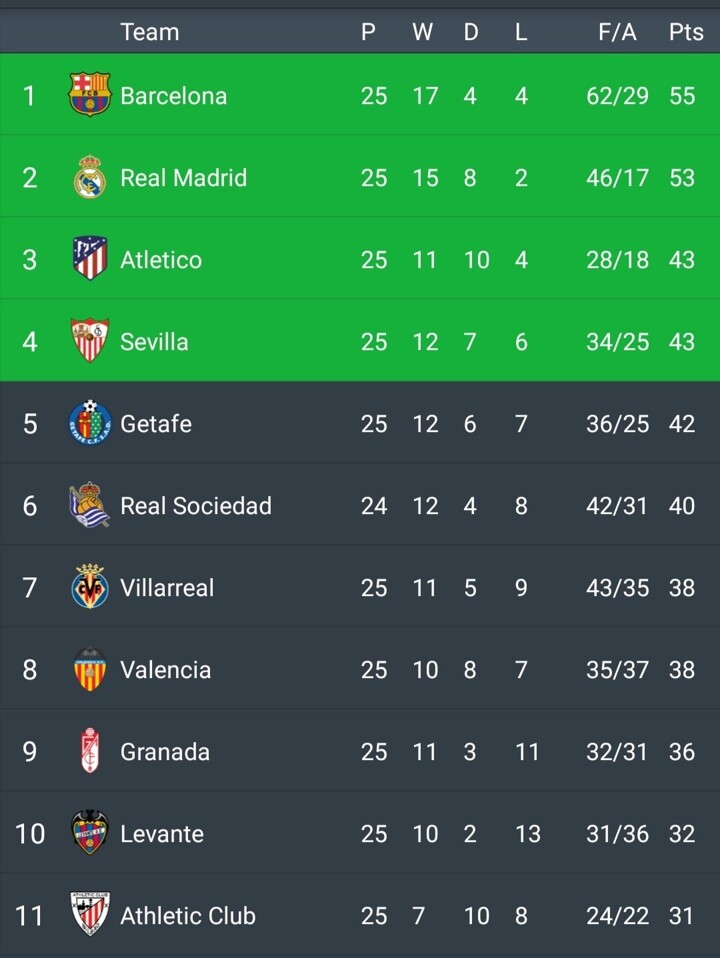 La Liga Standing