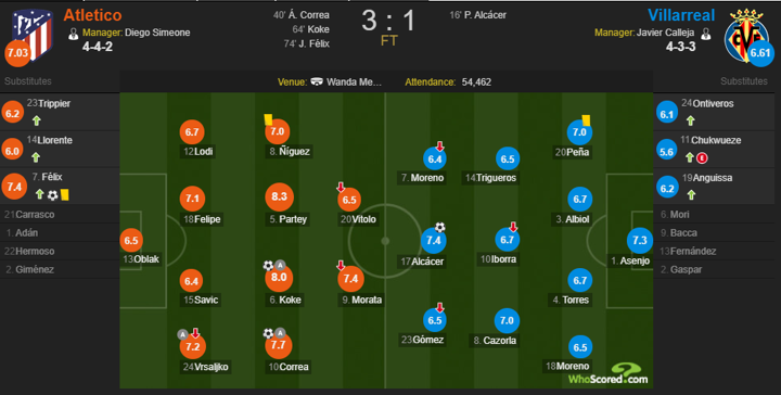 74' GOAL! Atletico 3-1 Villarreal (Felix)