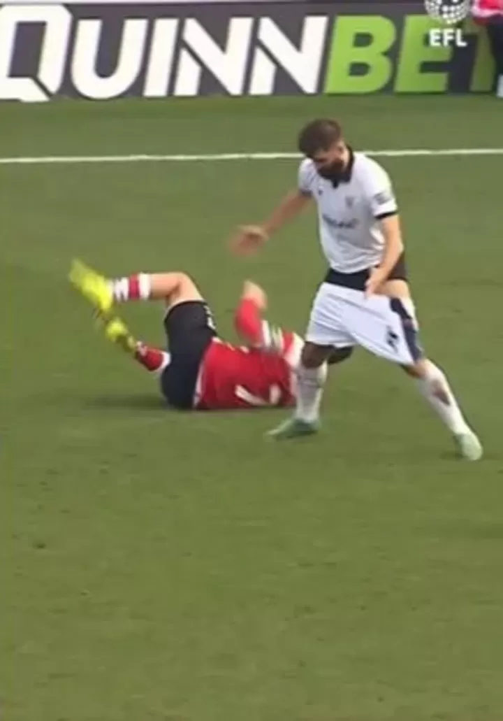 Tranmere Rovers defender Jordan Turnball was trying to stop an attack when he was caught in the awkward position.
