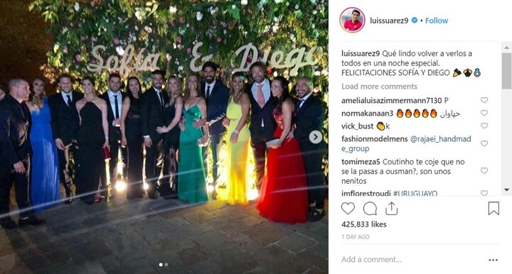 Luis Suarez also set across the Atlantic to return to Uruguay where he attended Diego Godin's wedding.