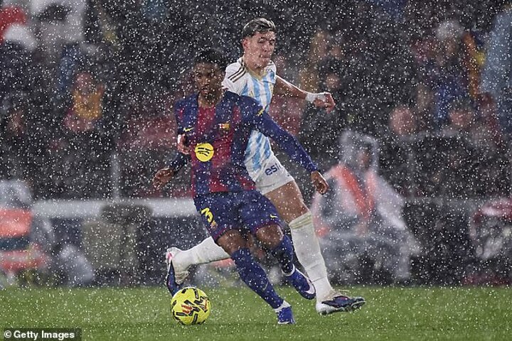 Barcelona's new-look Camp Nou came under pressure amid heavy rains in Catalonia as Hansi Flick's side met Real Oviedo on Sunday night.