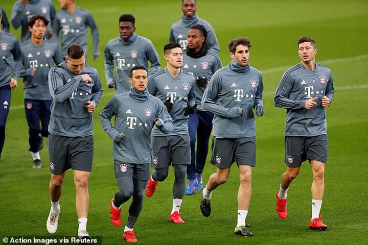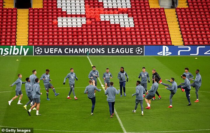 Bayern Munich trained on the Anfield pitch on Monday ahead of the Champions League last-16 first leg clash with Liverpool.