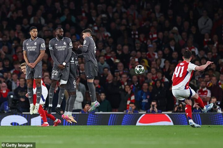 Declan Rice produced two stunning second half free kicks to put Arsenal 2-0 up on the night, before Mikel Merino fired home a third for the hosts.