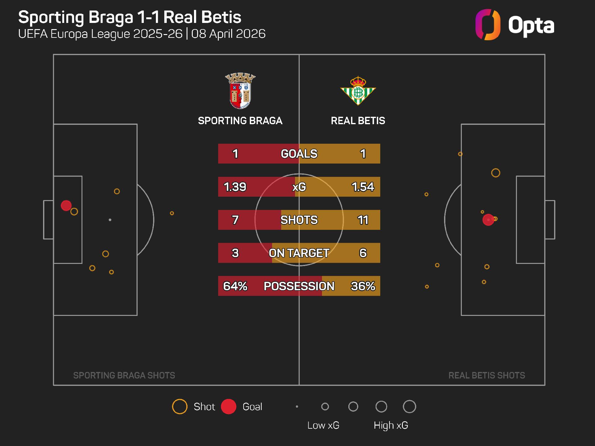 The final result fairly reflected the expected goals (xG) battle, as there was little to separate the teams on that front, with Braga putting up 1.39 xG to Betis' 1.54.