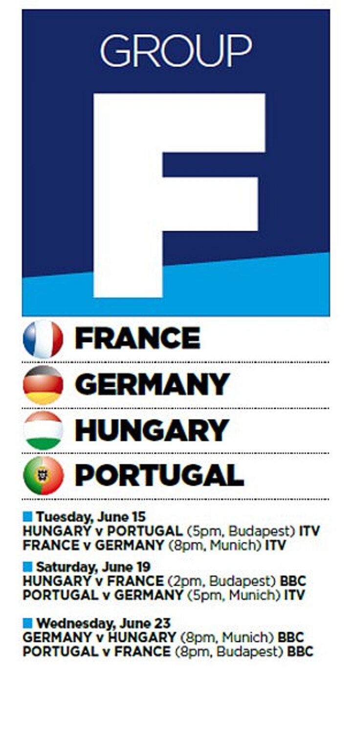 Two of their three group games are in Budapest so home advantage could work in their favour. Hungary can take inspiration from five years ago when they went into their final group game against Portugal — and drew 3-3 to finish top of Group F.