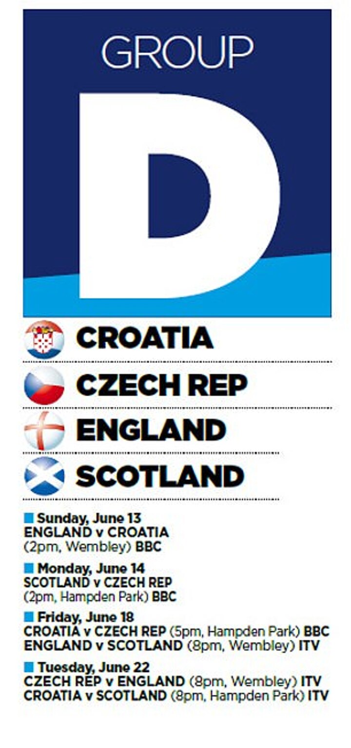 In qualifying for this tournament, England beat the Czechs 5-0 in London, then the Czechs beat England 2-1 in Prague. It's good news (for England) then that their final group game is at Wembley.