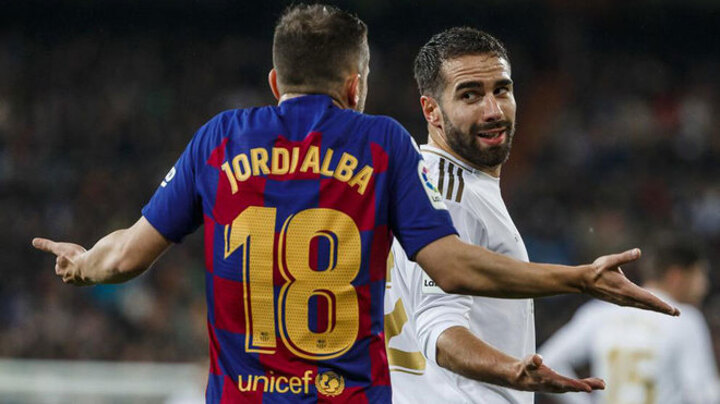 After going to war for the first 45 minutes, Jordi Alba and Dani Carvajal enjoyed a cuddle as they left the pitch at half time in Sunday's Clasico.