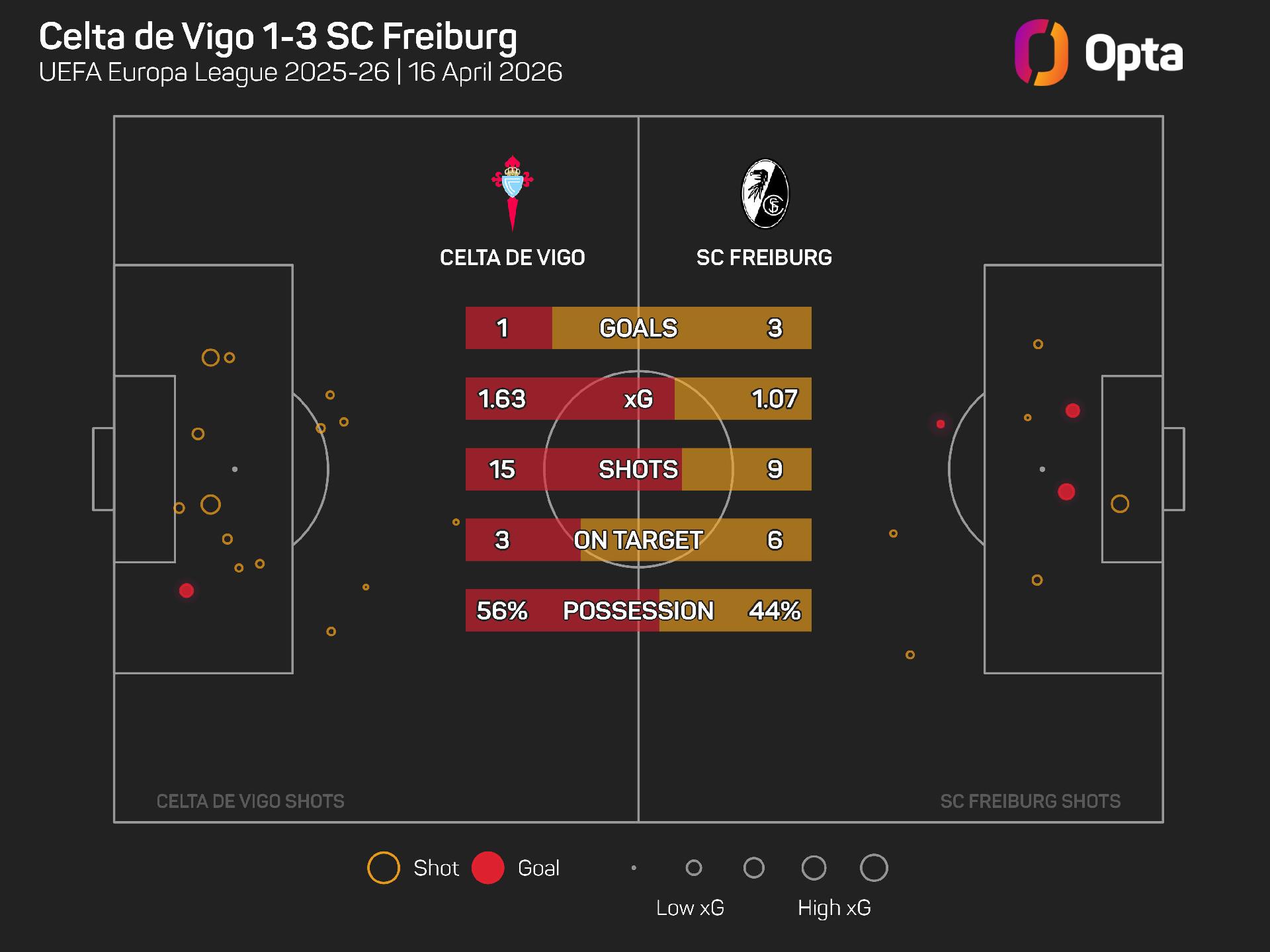 Freiburg had to soak up some pressure, with Celta having more shots (15 to nine) and more expected goals (1.63 xG to 1.07) in the second leg, but their devastating counter-attacks did the trick.