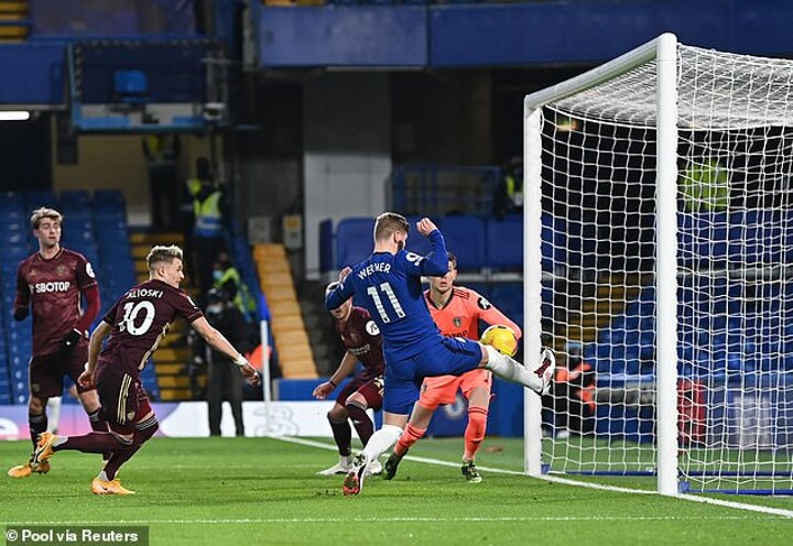 Werner missed two big chances in Chelsea's 3-1 win over Leeds in December, but how he managed to clear the ball off the opponents' goal-line is anyone's guess.