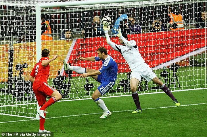 Cech pulled off a sensational save to preserve Chelsea's lead with ten minutes remaining of the 2012 final.