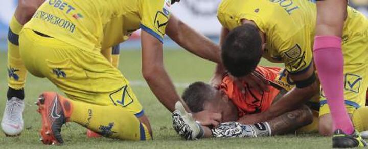 The shot-stopper seemed to be knocked unconscious for a moment in the final minutes of the Serie A opener at the Stadio Bentegodi.