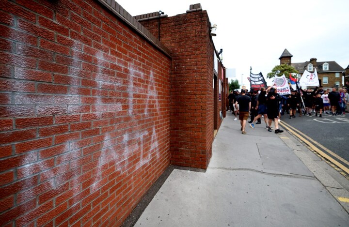 Walls outside of Selhurst Park were also left with graffiti reading "UEFA mafia".