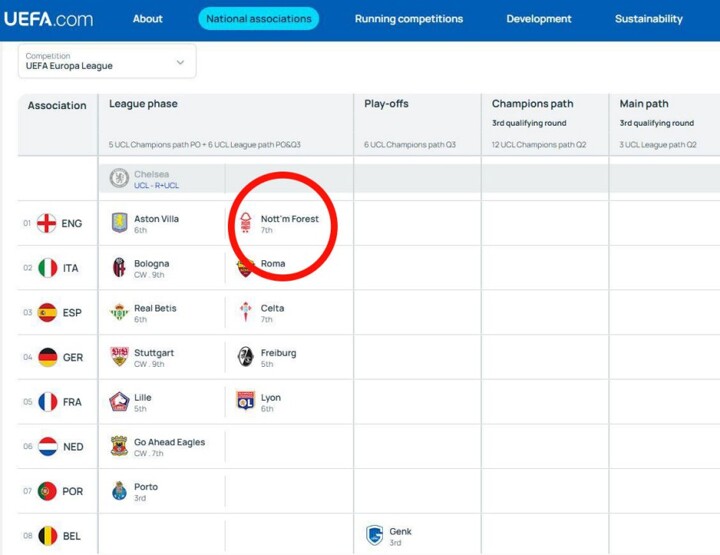 But Uefa’s official website list of entrants for the Europa League now has Forest’s name alongside Aston Villa as England’s representatives - with Chelsea not taking up their place as Conference League winners because of their qualification for the Champions League.