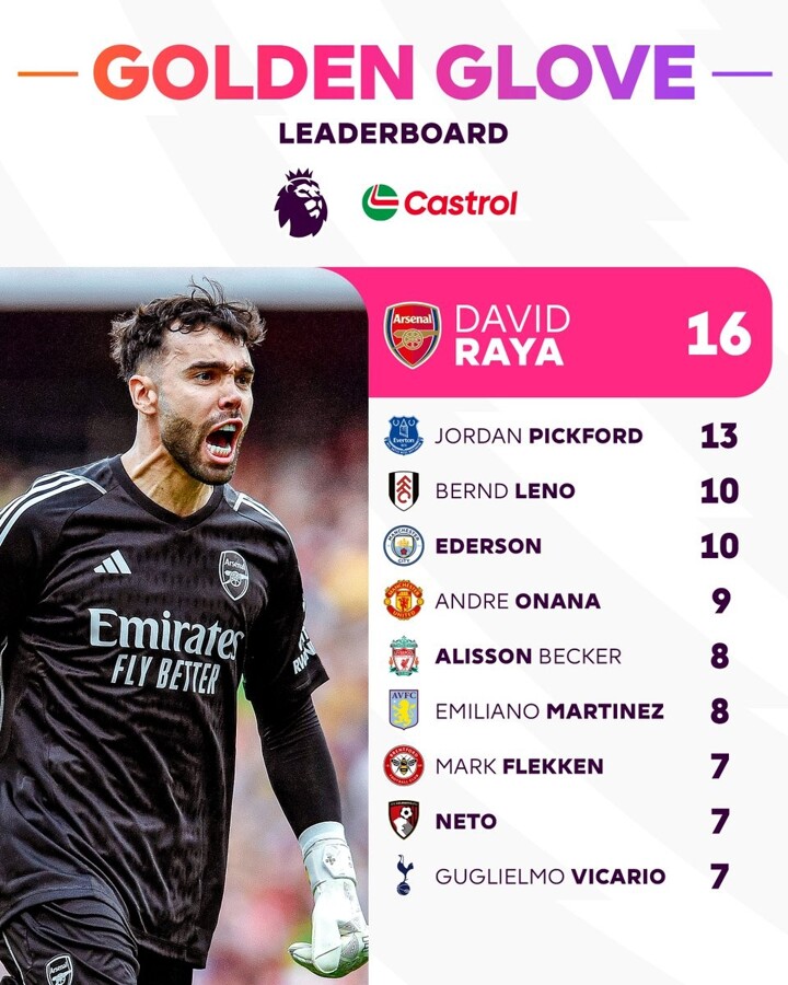 David Raya claimed the Golden Glove award, playing a vital role in Arsenal's league-leading defensive record! Copyright Declaration