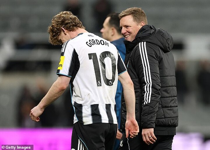 'I do have to clear something up with Anthony Gordon,' he began. 'He was absolutely willing to play in the game against Barcelona. I know there's a lot of comments. It was my decision not to start him based on the fact that he'd been ill that morning and hadn't attended the training session. So he was prepared to play, but in consultation with the medical team, we didn't think he was fit to play.'