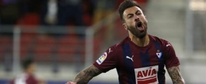 Eibar striker Sergi Enrich (pictured) and Rayo Vallecano defender Antonio Luna could face up to five years in prison for a recorded sex video.