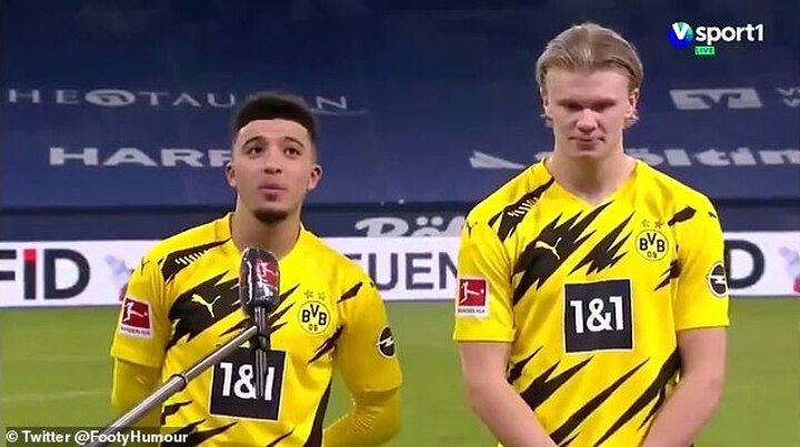 A clip of Sancho talking to the media alongside Erling Haaland went viral earlier this season as the Englishman joined the likes of Joey Barton and Steve McLaren in talking in a slightly altered tone.