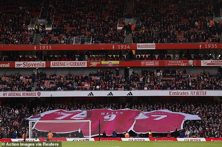 Then as the players walked out on a sunny day in London, fans held up huge banners displaying the striker's old shirt, along with those of fellow Gunners David Rocastle and Jose Antonio Reyes, and pictures of him in action for the club and for the Toffees.
