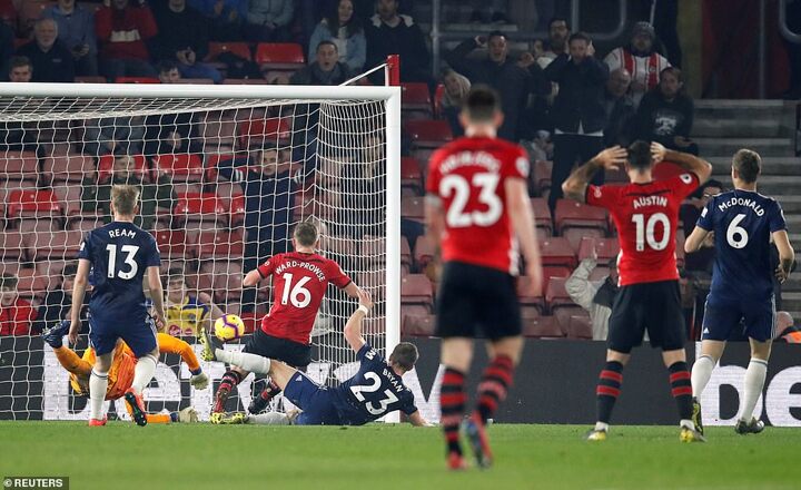 It was 2-0 before half time as Bertrand forced Rico into the save. The goalkeeper palmed the ball into the path of Ward-Prowse, who tapped in the rebound.