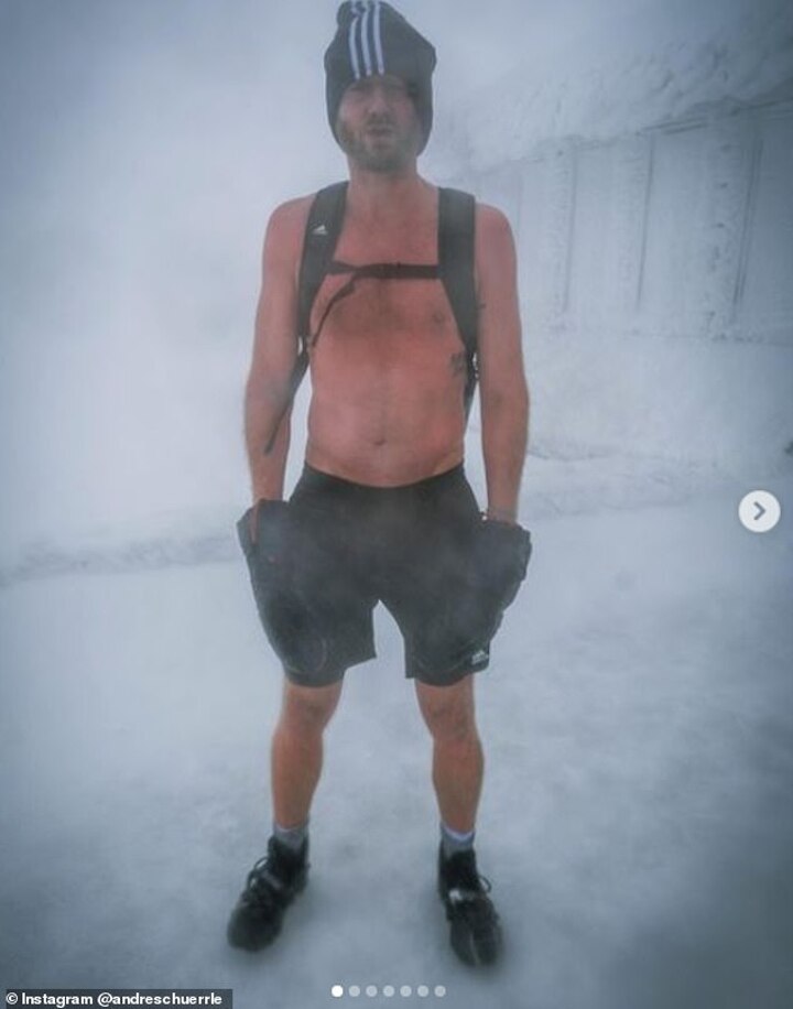 The German wore only shorts, gloves and hiking boots in below freezing temperatures during his expedition.
