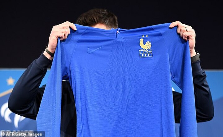 The jersey was produced by Nike, whose famous tick logo is camouflaged on the chest as it is the same colour as the shirt itself, while the French cockerel crest has been stitched in gold thread.