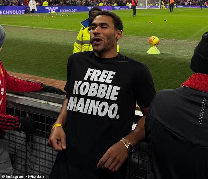 Mainoo-Hames, who was a contestant on the fifth series of the hit ITV dating show in 2019, was spotted inside Old Trafford on Monday wearing a black shirt reading 'Free Kobbie Mainoo' in an apparent dig at the Portuguese.