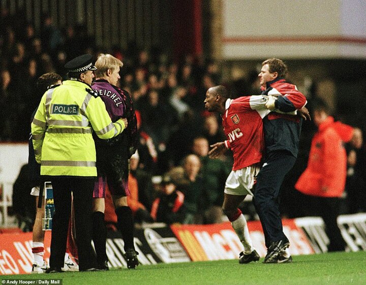 The game at Highbury that season was marred by a clash between Arsenal striker Ian Wright and United goalkeeper Peter Schmeichel.