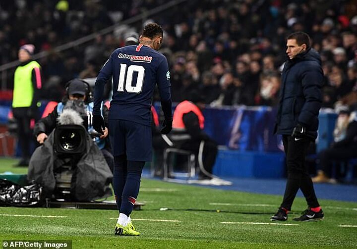 The Brazil forward looked to be in tears as he left the field at the Parc des Princes.