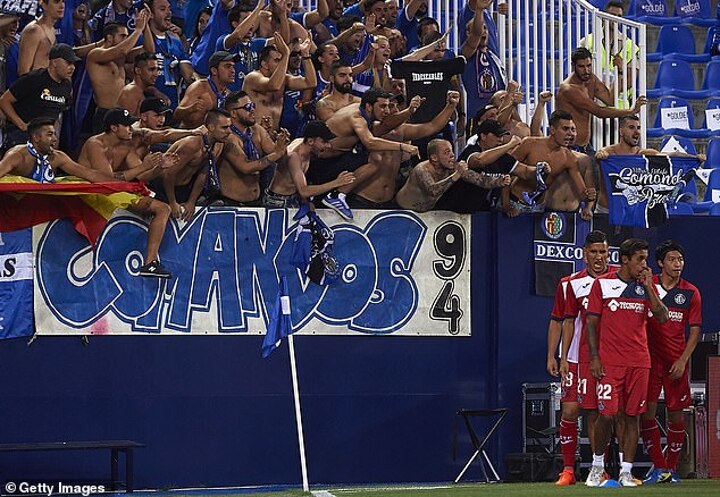 Getafe supporters cheer on their team prior to the first south Madrid derby in La Liga in 2017