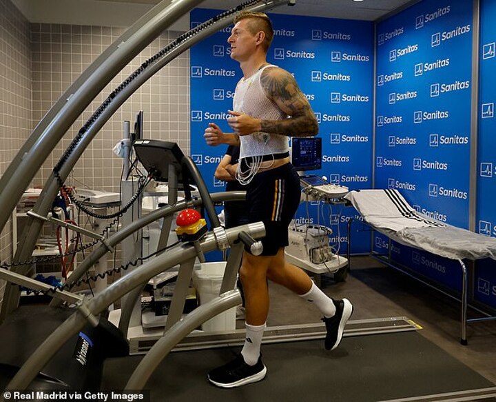 Today, he was pictured in his first training session for the club, as the players arrived at the Ana de Austria Building at the Sanitas La Moraleja University Hospital in Madrid to complete several fitness tests.