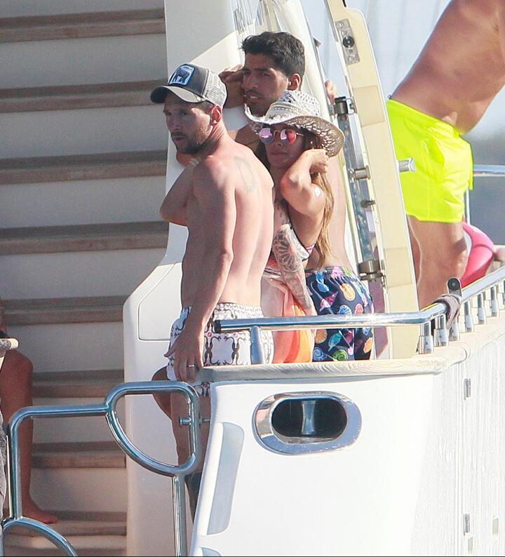 The footballing trio, who played together at Barcelona before Fabregas returned back to the Premier League with Chelsea, are enjoying a luxury holiday in Formentera.