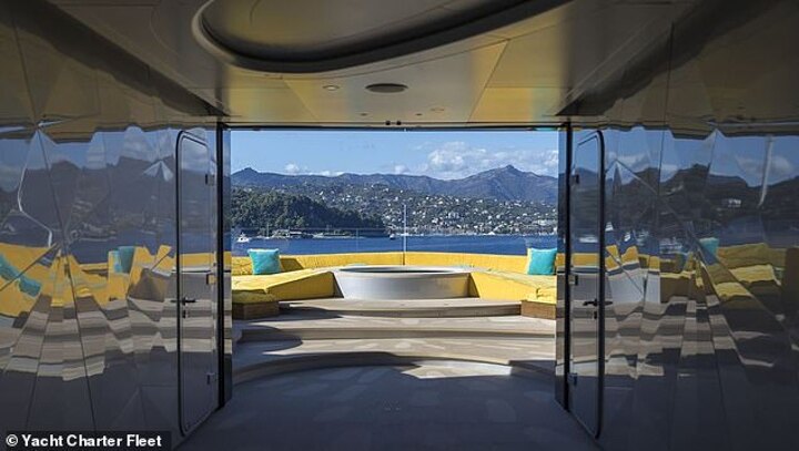 Furthermore, there is thought to be a 'secret' cinema on board and tucked out of sight, as well as a piano and large salon with sprawling windows and balconies.