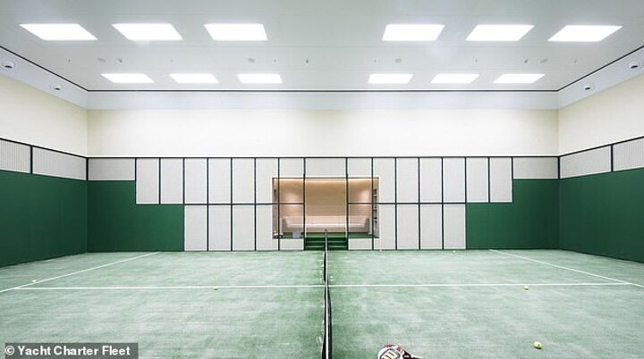 The standout feature is the state-of-the-art tennis court, located in the lower deck. The room is 20 metres long and the yacht was effectively designed around it.