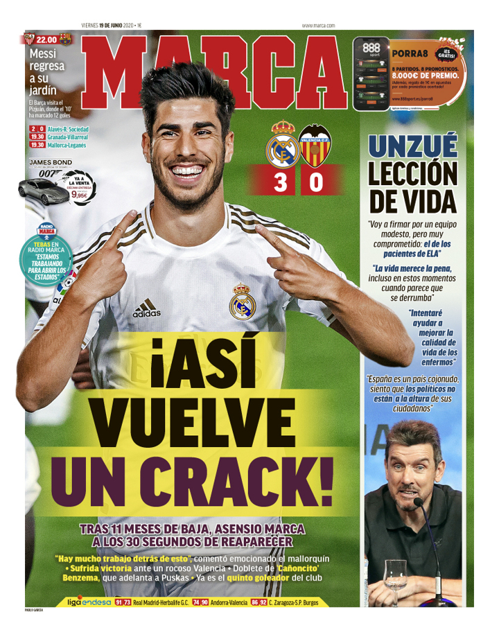 Now, Asensio's back amongst his teammates and back amongst the goals, but it hasn't been easy.