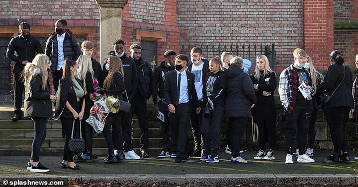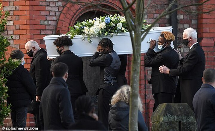 Onlookers waited outside as the ceremony took place, with family, friends and team-mates allowed to go into the church to pay their respects.