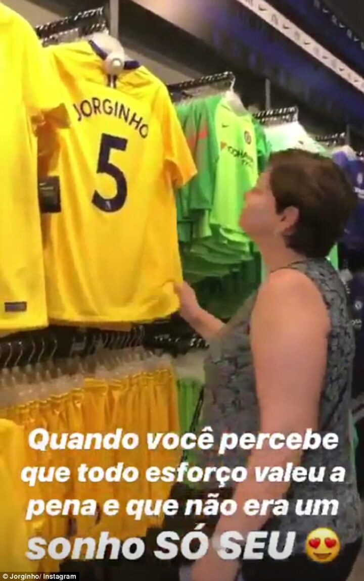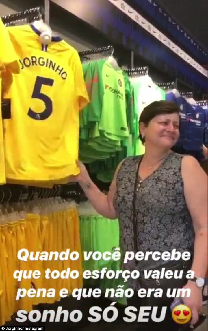 However a trip to Chelsea's club shop proved too much for the mother of Jorginho, Maurizio Sarri's first summer recruit, as she broke down in tears at the sight of his No 5 shirt.