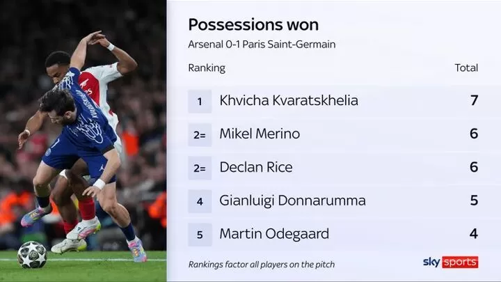 Ethan Nwaneri came on. Kvaratskhelia dispossessed him too, dropping to his knees at full-time. Luis Enrique said his side were better without the ball than with it. Amazingly, it was his winger who won possession of the ball more than anyone else on the pitch.