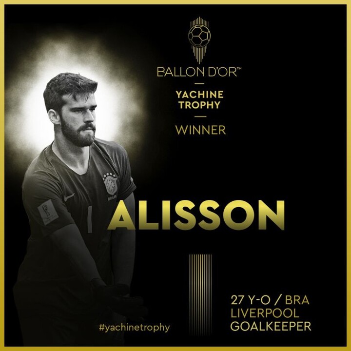 OFFICIAL: Alisson wins the inaugural Yachine Trophy as best goalkeeper of 2019