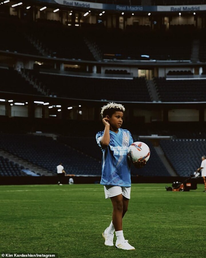The reality TV personality, 43, took to Instagram on Sunday to share photos of her and her eldest son, eight, at the Santiago Bernabéu Stadium, the home of Real Madrid, a week ago.