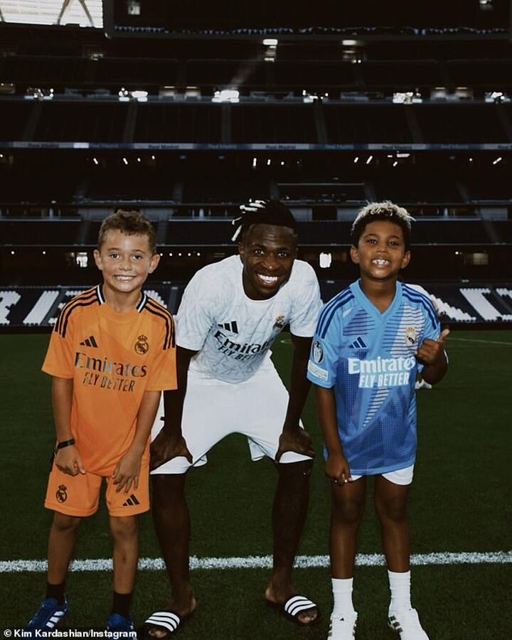 Then, she included a fun snapshot of the two kids posing alongside Real Madrid's Vinicius Junior.