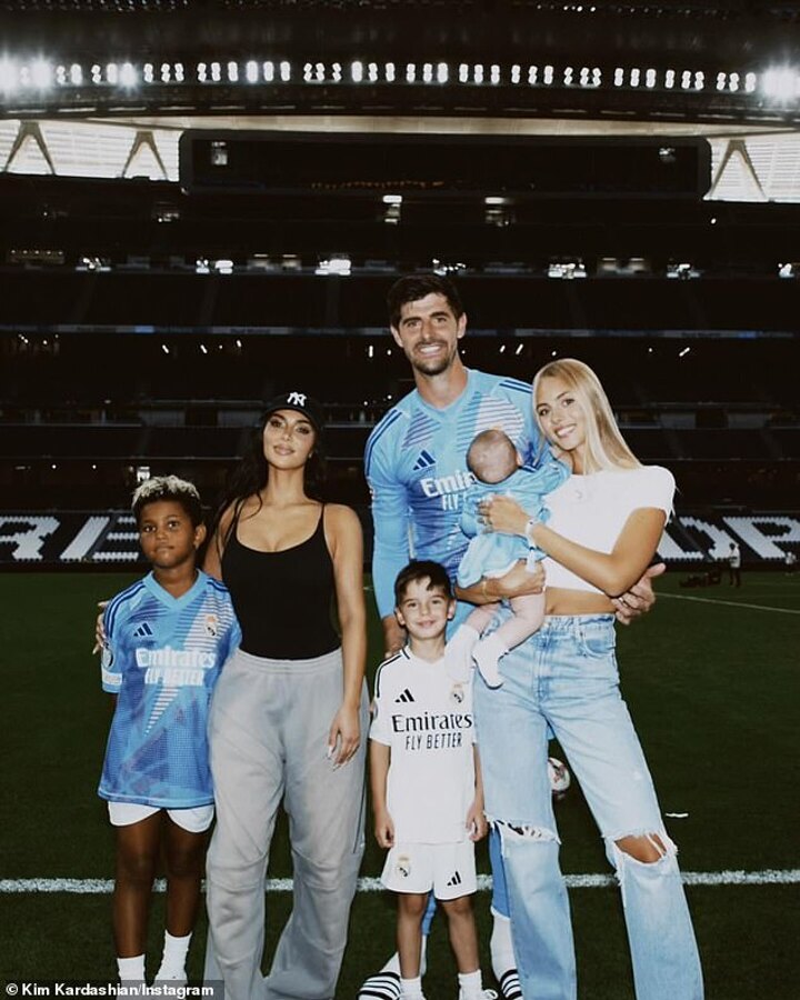 The series also included a group photo of Kardashian with Saint alongside goalkeeper Thibaut Courtois, his wife Mishel Gerzig Courtois, his son Nicolás from a previous relationship and the couple's newborn baby girl.