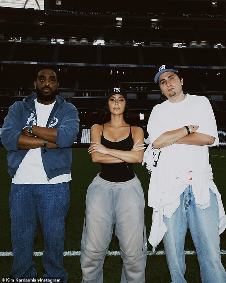 In another snapshot, Kardashian stood on the pitch alongside her friends, Simon Gebrelul and Savas Oguz, as they all posed with crossed arms.