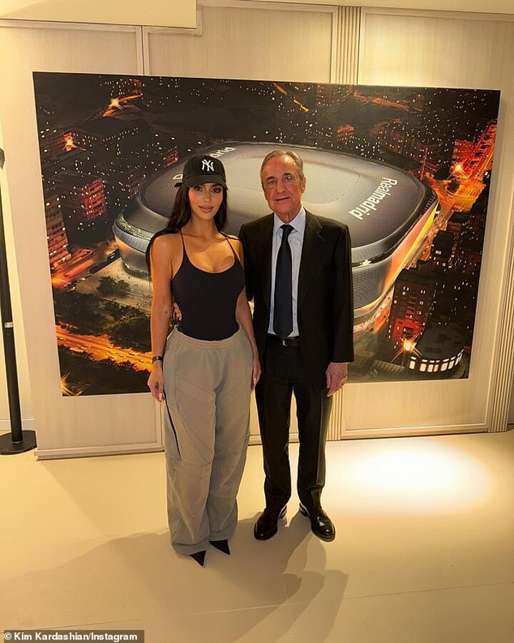 The SKIMS founder posed for a snap and shared the picture of her with Florentino Pérez, the club president of Real Madrid.