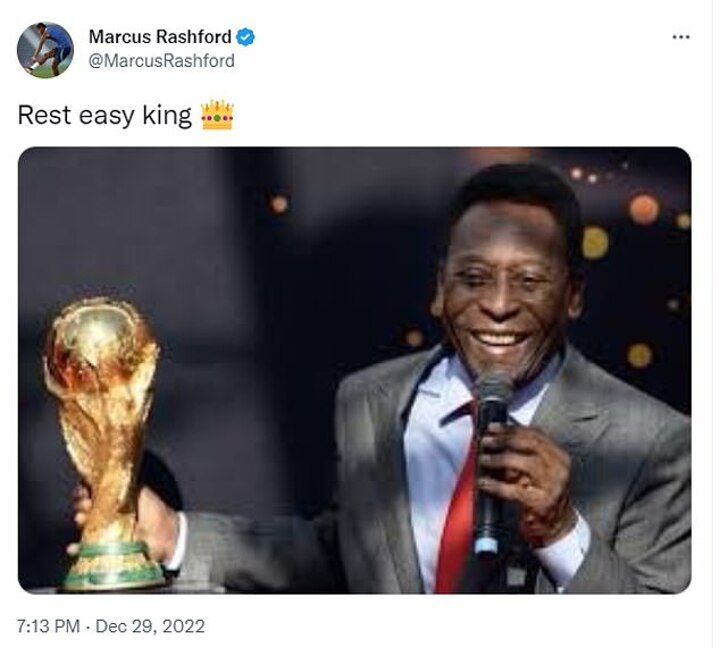 Marcus Rashford simply said: 'Rest easy king', along with a picture of Pele with the World Cup trophy.