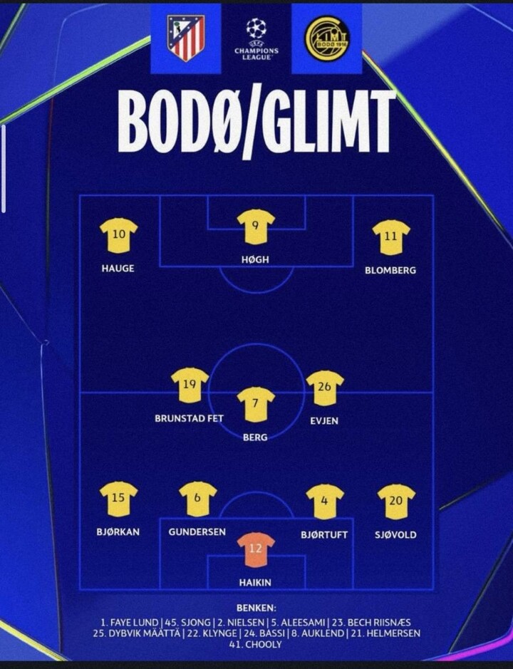 The line-ups of Atletico vs Bodo Glimt have been announced.