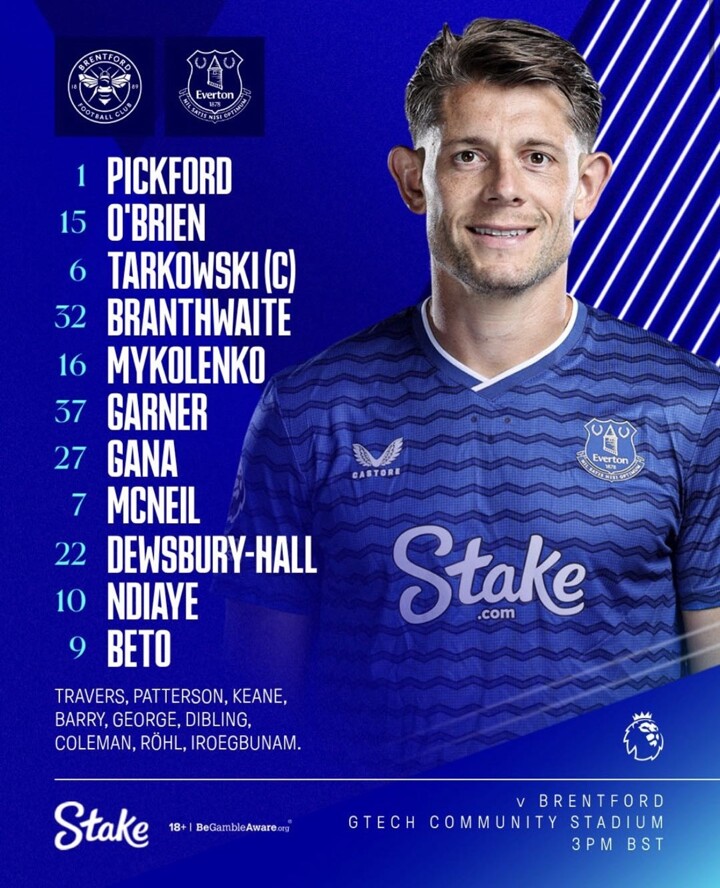 Everton XI: Gueye, Pickford, Tarkowski, Dewsbury-Hall, Vitaliy Mykolenko, McNeil, Garner, Beto, Iliman Ndiaye, Jarrad Branthwaite, Jake O'Brien