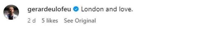 'London and love,' the former Watford and Everton forward wrote on Milla's post.