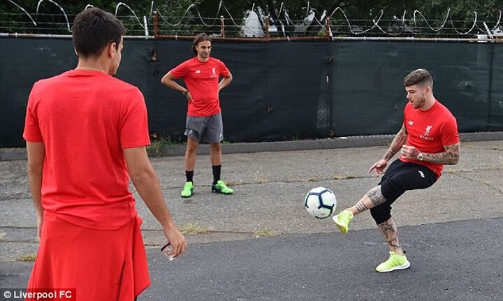 They could be seeing passing the ball amongst themselves and doing keepy-uppies in photographs published on the official Liverpool site.