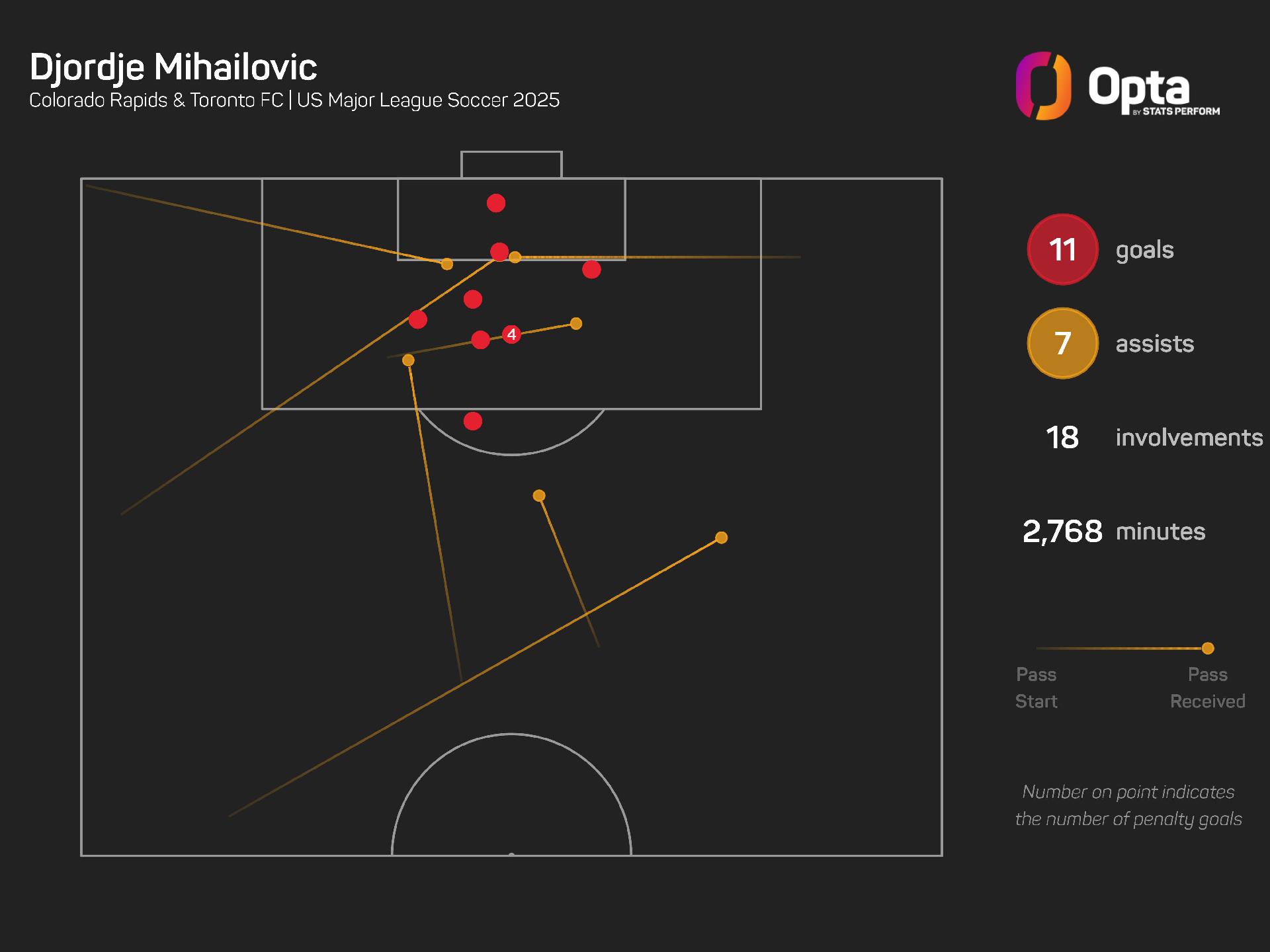 Mihailovic scored the equalising goal for Toronto at Chicago on Saturday in the 10th minute of stoppage time, the latest goal the team has ever scored.