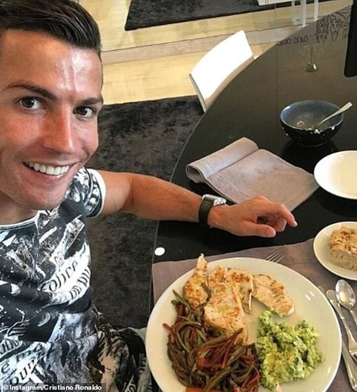 There is always a lot of salad on Ronaldo's plate and for breakfast he will eat cheese, ham, low-fat yogurt and fruit and avocado toast. He considers chicken one of the magical foods: rich in protein and low in fat.